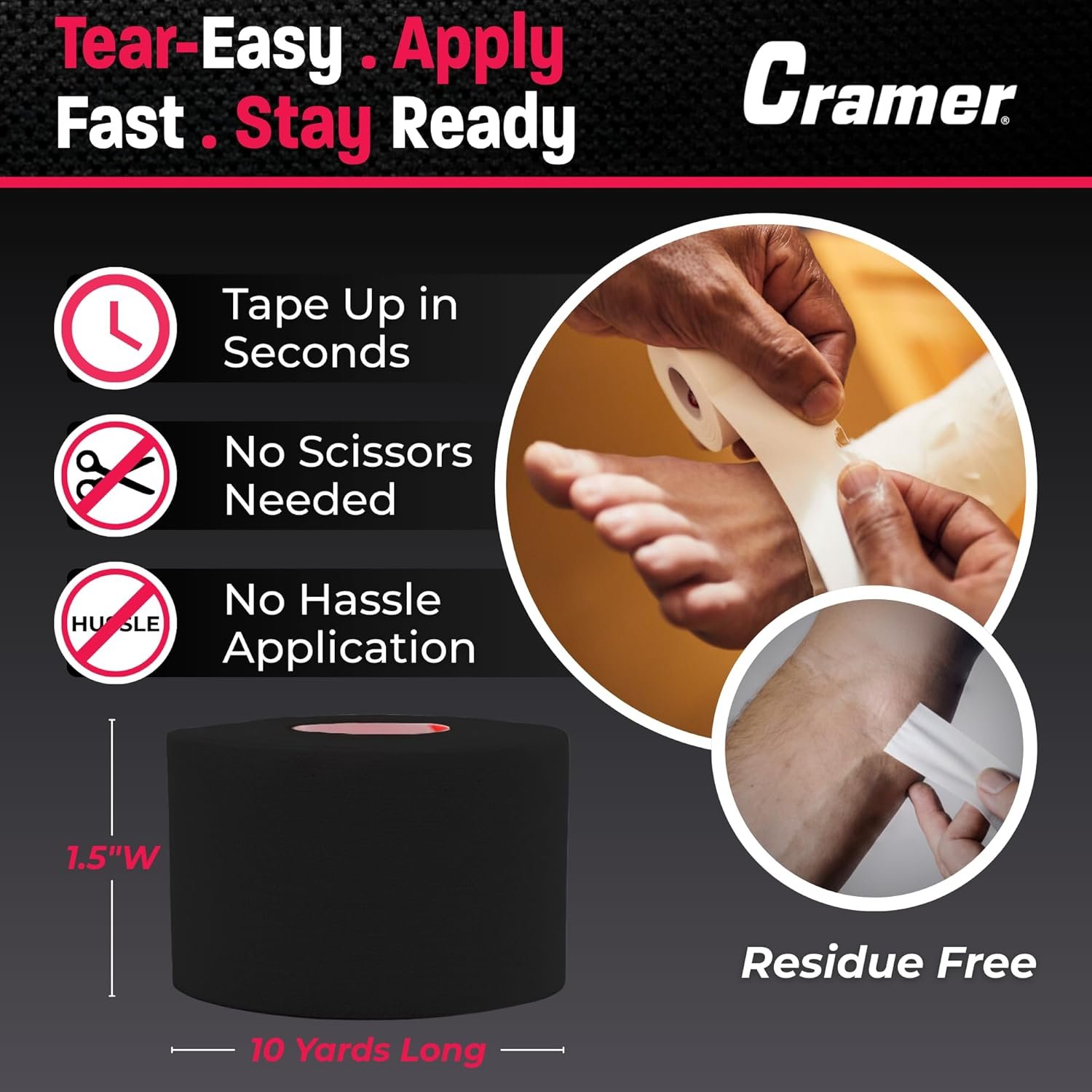 Users praise its easy tear tape design—no scissors needed for quick application. - Does athletic tape leave sticky residue after removal?