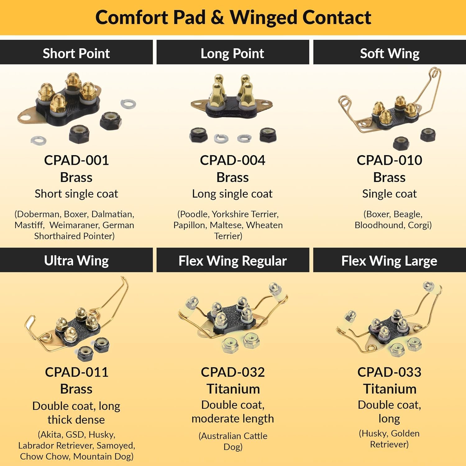 - Engineered for thick fur dogs: The winged brass design ensures solid skin contact through dense, double-coated dog fur for efficient stimulation.